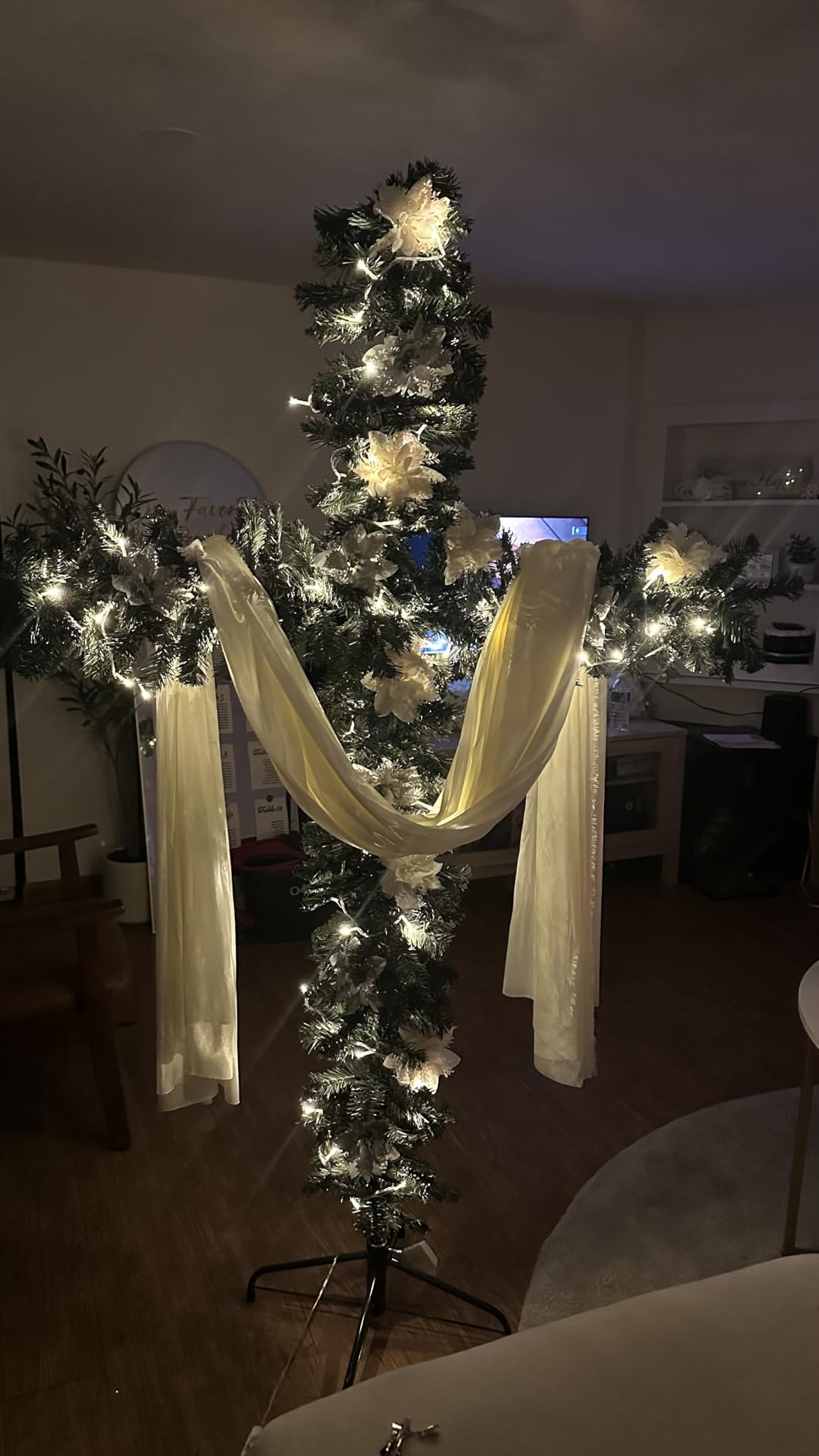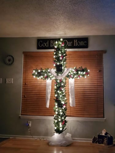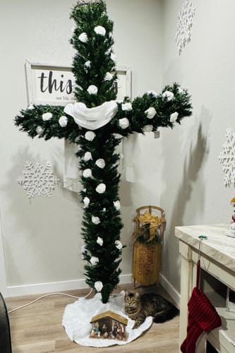 This 5'11" Christmas tree is beautifully shaped like a Christian cross, symbolizing faith and the true meaning of Christmas. Its unique design blends holiday warmth with spiritual significance, making it a stunning centerpiece for any home.